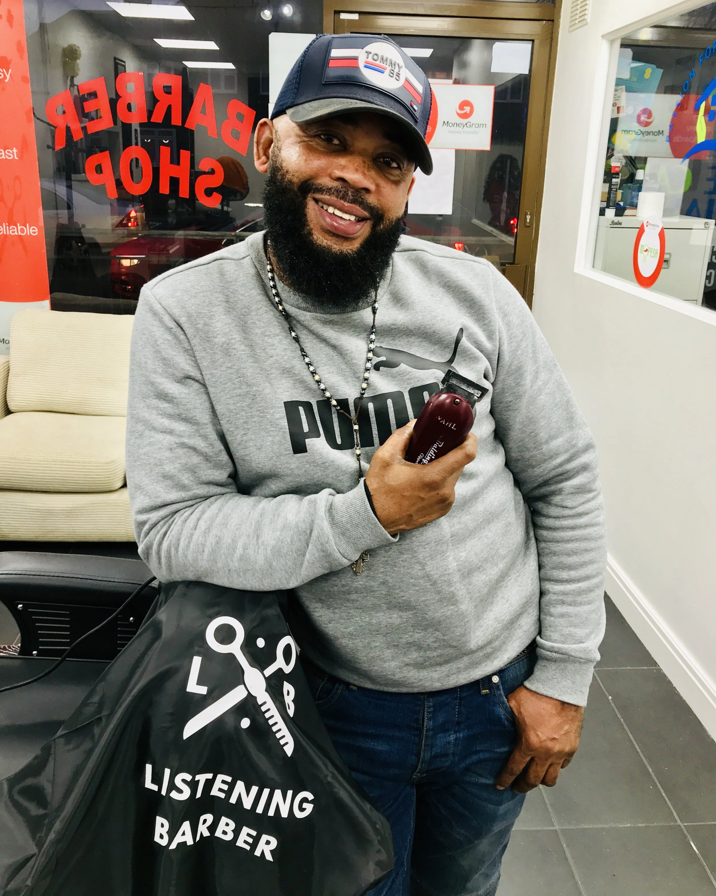The project started in the Every One Every Day shop on Church Elm Lane shop when a local barber based on Dagenham Heathway came to do haircuts for children in the shop. It was then taken on by local barber Chika in Martin’s Corner. Chika has 10 years experience of in barbering and loves his job. He wanted the community to know he was here to listen.